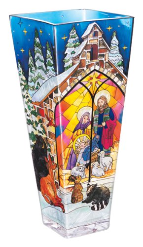 Bright and beautiful in a myriad of color and design, this individually hand-painted, glass vase by Amia promises to attract attention in your home. Also makes a great gift for someone special..../ Amia Glass Vase with a Colorful Hand-Painted Design Featuring a Nativity Scene, 13-Inches Tall / Vases Tall
